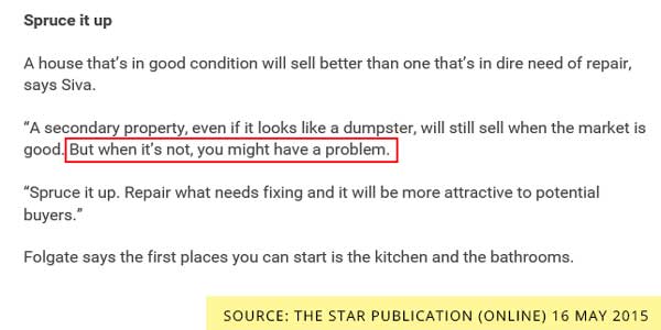 At times, if you don’t have any competitive advantage over your competitors such as value added items e.g. full set of marble dining table, solar generator with back up battery from Tesla, full LED bulbs, or at least not-so run down house etc. then the only you can do to compete perhaps is to lowering your price.
